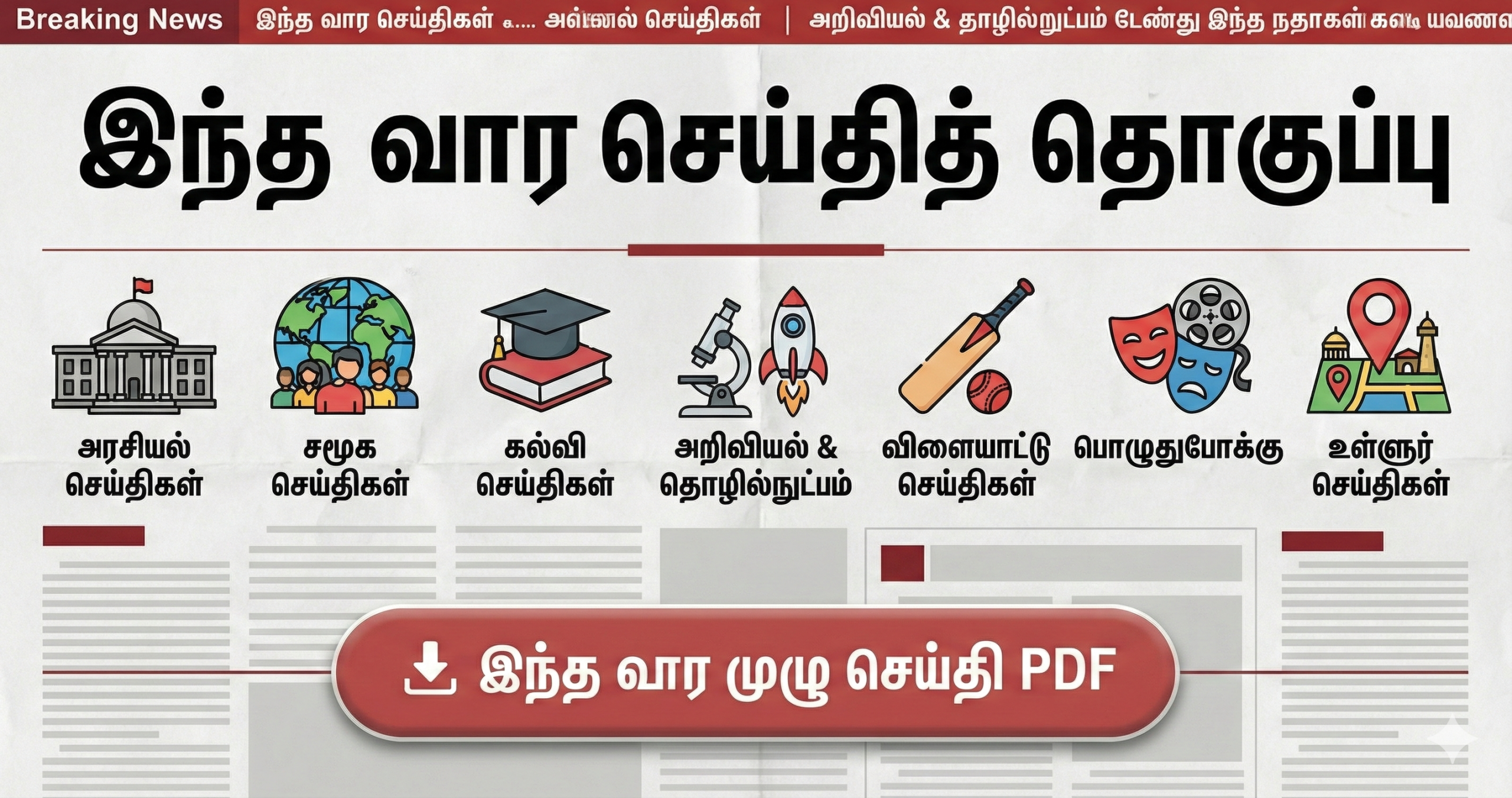 - 🏛️ அரசியல் செய்திகள் – அரசு அறிவிப்புகள், தேர்தல் செய்திகள், முக்கிய தீர்மானங்கள்